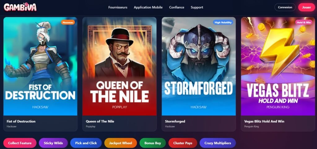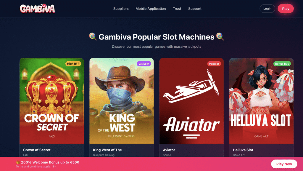 - Gambiva Casino focuses on fast payments, strong slot variety and clean user experience.